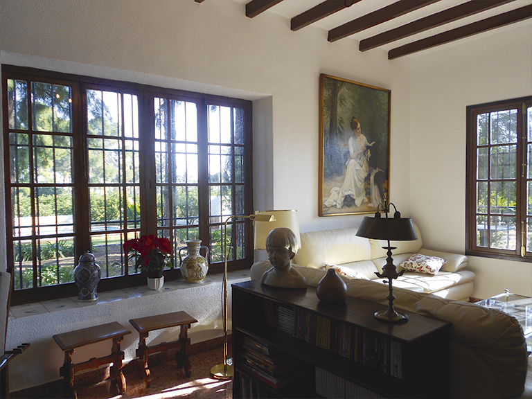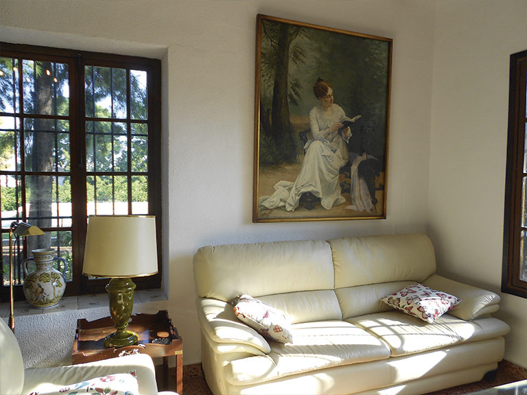 Cerca de 600 m2 distribuidos en dos plantas, chimeneas, patio, salones y muebles de época nos trasladan fácilmente a su historia pasada.