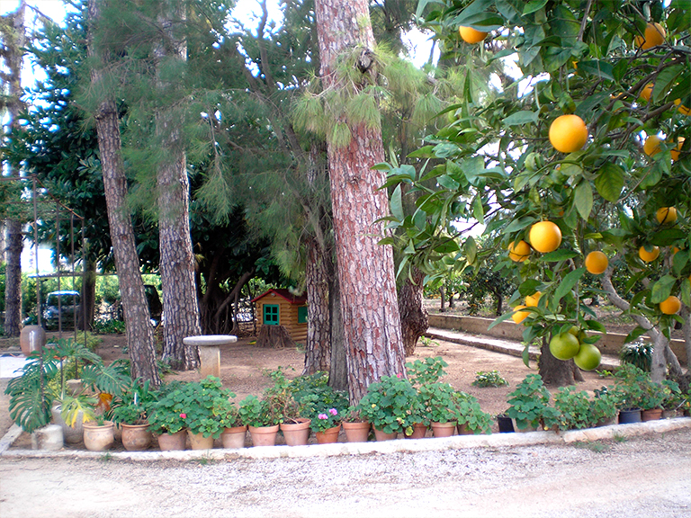 Pinos canarios, palmeras, naranjos y limoneros, imprimen sobre nuestro jardín luces y sombras que le alejaran del estrés cotidiano. Y con el buen tiempo, la piscina, la plazoleta “El palomar” con su barbacoa exterior concentran la vida y ofrecen una experiencia única a grandes y pequeños.